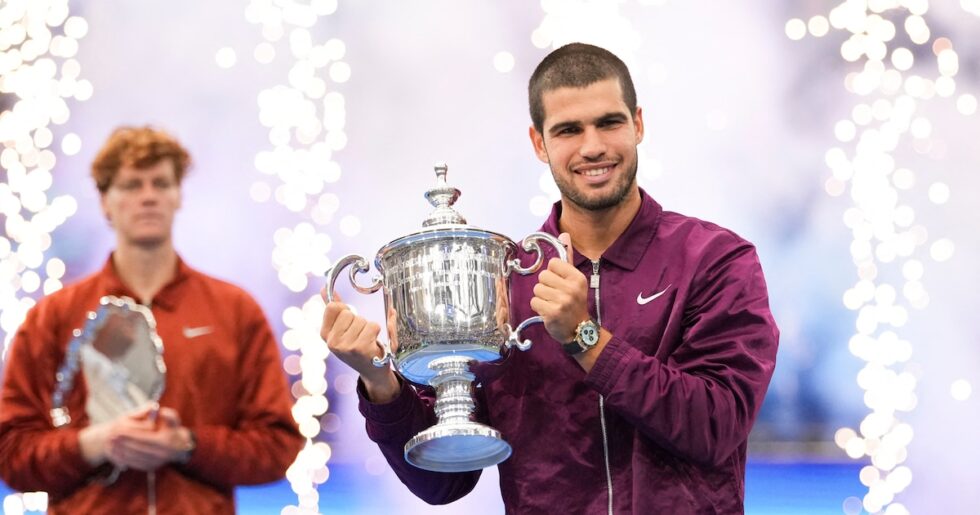 “,”type”:”raw_html”},{“_id”:”GETGDEB26RHF5KERT74Q5PKDSE”,”additional_properties”:{},”content”:”*Las frases de Sinner en la premiación“,”type”:”text”}],”created_date”:”2025-09-07T17:23:42.815Z”,”credits”:{“by”:[]},”dates”:{“argentinaTimezone”:{“publishedDate”:”07 Sep, 2025 06:44 p.m.”,”updateDate”:”07 Sep, 2025 08:09 p.m. AR”},”centralTimezone”:{“publishedDate”:”07 Sep, 2025 04:44 p.m.”,”updateDate”:”07 Sep, 2025 06:09 p.m. CST”},”colombiaTimezone”:{“publishedDate”:”07 Sep, 2025 04:44 p.m.”,”updateDate”:”07 Sep, 2025 06:09 p.m. CO”},”estTimezone”:{“publishedDate”:”07 Sep, 2025 05:44 p.m.”,”updateDate”:”07 Sep, 2025 07:09 p.m. EST”},”mexicoTimezone”:{“publishedDate”:”07 Sep, 2025 03:44 p.m.”,”updateDate”:”07 Sep, 2025 05:09 p.m. MX”},”mountainTimezone”:{“publishedDate”:”07 Sep, 2025 03:44 p.m.”,”updateDate”:”07 Sep, 2025 05:09 p.m. MST”},”pacificTimezone”:{“publishedDate”:”07 Sep, 2025 02:44 p.m.”,”updateDate”:”07 Sep, 2025 04:09 p.m. PST”},”peruTimezone”:{“publishedDate”:”07 Sep, 2025 04:44 p.m.”,”updateDate”:”07 Sep, 2025 06:09 p.m. PE”},”spainTimezone”:{“publishedDate”:”07 Sep, 2025 11:44 p.m.”,”updateDate”:”08 Sep, 2025 01:09 a.m. ESP”}},”description”:{“basic”:”El español se quedó con el título por 6-2, 3-6, 6-1 y 6-4, levantó su segundo Grand Slam de la temporada y desplazó de la cima del ranking al italiano”},”display_date”:”2025-09-07T21:44:16.962Z”,”first_publish_date”:”2025-09-07T17:52:43.8Z”,”headlines”:{“basic”:”Carlos Alcaraz venció a Jannik Sinner en una histórica final del US Open y vuelve a ser el N°1 del mundo “,”meta_title”:””},”isStoryUpdated”:true,”last_updated_date”:”2025-09-07T23:09:03.831Z”,”promo_items”:{“basic”:{“_id”:”KZXDIXV2QZBMPNDFOVG2BJMPQQ”,”additional_properties”:{“originalUrl”:”https://cloudfront-us-east-1.images.arcpublishing.com/infobae/KZXDIXV2QZBMPNDFOVG2BJMPQQ.JPG”,”resizeUrl”:”/resizer/v2/KZXDIXV2QZBMPNDFOVG2BJMPQQ.JPG?auth=92ef7e4b8b98666096309cf90e0d8c94a02b0f337108e3298e342cc3bfe09421″},”auth”:{“1″:”92ef7e4b8b98666096309cf90e0d8c94a02b0f337108e3298e342cc3bfe09421″},”caption”:”Sep 7, 2025; Flushing, NY, USA; Carlos Alcaraz (ESP) holds the trophy after defeating Jannik Sinner (ITA) in the final of mens singles at Billie Jean King National Tennis Center. Mandatory Credit: Robert Deutsch-Imagn Images”,”height”:2392,”url”:”https://cloudfront-us-east-1.images.arcpublishing.com/infobae/KZXDIXV2QZBMPNDFOVG2BJMPQQ.JPG”,”width”:4253}},”publish_date”:”2025-09-07T23:09:03.708Z”,”source”:{“name”:”infobae”},”subheadlines”:{“basic”:”El español se quedó con el título por 6-2, 3-6, 6-1 y 6-4, levantó su segundo Grand Slam de la temporada y desplazó de la cima del ranking al italiano”},”subtype”:”comments=true”,”taxonomy”:{“primary_section”:{“_id”:”/deportes”,”additional_properties”:{“original”:{“DFP”:{“dfp_path”:”infobae/deportes”}}},”name”:”Deportes”,”path”:”/deportes”},”sections”:[{“_id”:”/deportes”,”name”:”Deportes”}],”sites”:[{“_id”:”/deportes”,”description”:”Deportes”,”name”:”Deportes”}],”tags”:[{“_id”:”1757265804047″,”description”:”Carlos Alcaraz”,”slug”:”carlos-alcaraz”,”text”:”Carlos Alcaraz”},{“_id”:”1757265808381″,”description”:”Jannik Sinner”,”slug”:”jannik-sinner”,”text”:”Jannik Sinner”},{“_id”:”1757265810649″,”description”:”US Open”,”slug”:”us-open”,”text”:”US Open”},{“_id”:”1757265815379″,”description”:”Abierto de Estados Unidos”,”slug”:”abierto-de-estados-unidos”,”text”:”Abierto de Estados Unidos”},{“_id”:”1757265816759″,”description”:”Tenis”,”slug”:”tenis”,”text”:”Tenis”},{“_id”:”1757265819884″,”description”:”Grand Slam”,”slug”:”grand-slam”,”text”:”Grand Slam”},{“_id”:”1757267388847″,”description”:”deportes-argentina”,”slug”:”deportes-argentina”,”text”:”deportes-argentina”}]},”type”:”story”,”website_url”:”/deportes/2025/09/07/carlos-alcaraz-y-jannik-sinner-se-enfrentan-en-la-final-del-us-open/”};Fusion.globalContentConfig={“source”:”content-api”,”query”:{“uri”:”/deportes/2025/09/07/carlos-alcaraz-y-jannik-sinner-se-enfrentan-en-la-final-del-us-open/”,”website_url”:”/deportes/2025/09/07/carlos-alcaraz-y-jannik-sinner-se-enfrentan-en-la-final-del-us-open/”,”arc-site”:”infobae”}};Fusion.lastModified=1757302832178;Fusion.contentCache={“site-service”:{“{“hierarchy”:”menu-argentina”,”section”:””,”website”:”infobae”}”:{“data”:{“_id”:”/”,”children”:[{“_id”:”/argentina-homepage”,”children”:[],”name”:”Argentina”,”navigation”:{“display_in_top_strip”:null},”site”:{“site_url”:”https://www.infobae.com/?noredirect”}},{“_id”:”/colombia”,”children”:[],”name”:”Colombia”,”navigation”:{“display_in_top_strip”:null},”site”:{“site_url”:”https://www.infobae.com/colombia/”}},{“_id”:”/espana”,”children”:[],”name”:”España”,”navigation”:{“display_in_top_strip”:null},”site”:{“site_url”:”https://www.infobae.com/espana/”}},{“_id”:”/mexico”,”children”:[],”name”:”México”,”navigation”:{“display_in_top_strip”:null},”site”:{“site_url”:”https://www.infobae.com/mexico/”}},{“_id”:”/peru”,”children”:[],”name”:”Perú”,”navigation”:{“display_in_top_strip”:null},”site