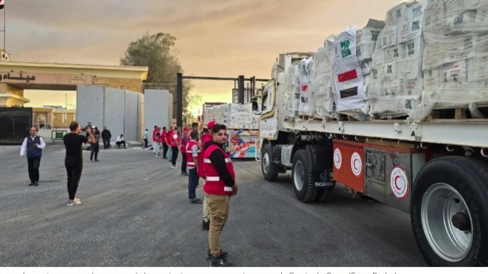 El medio, vinculado a los servicios de inteligencia egipcios, indicó que la previsión es que a lo largo de la jornada de hoy ingresen unos cuatrocientos camiones con diferentes tipos de asistencia al enclave palestino.