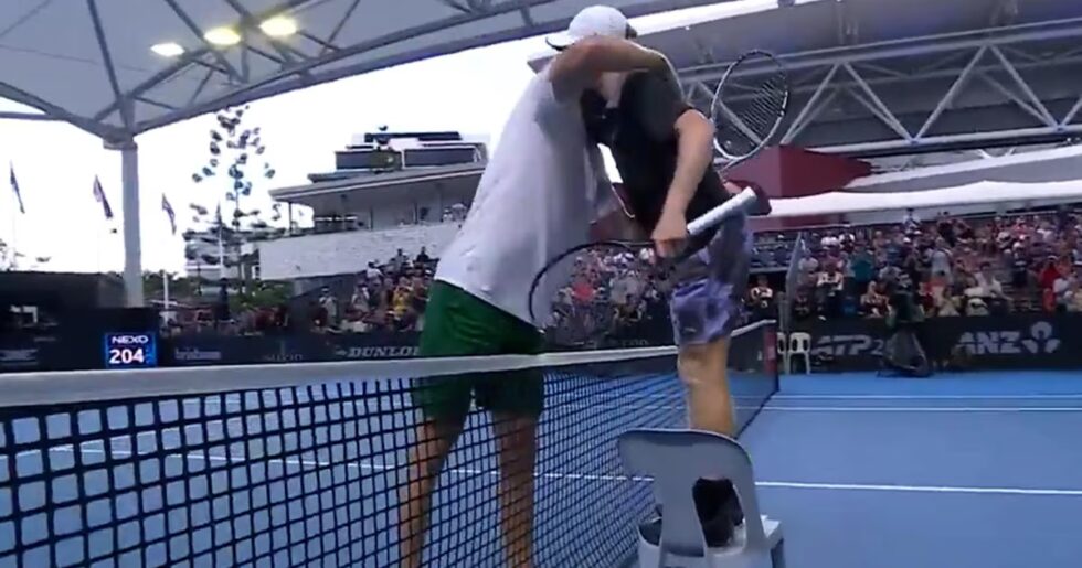 “,”type”:”raw_html”},{“_id”:”C667AI3E6FGNXLCTRP6LQICVJI”,”additional_properties”:{},”content”:”En el torneo ATP 250 de Brisbane, una postal inusual captó la atención del público durante la primera ronda: el australiano Dane Sweeny utilizó una silla para poder abrazar a Reilly Opelka al final de su partido, evidenciando la marcada diferencia de estatura entre ambos tenistas. El episodio ocurrió luego de que Sweeny, de 1,70 metros de altura, cayera ante el estadounidense Opelka, quien mide 2,11 metros, en dos sets con parciales de 6-3 y 7-5.”,”type”:”text”},{“_id”:”BSCXRC2AS5EAVBZHODJ62HXB5E”,”additional_properties”:{},”content”:”El partido formó parte de las competiciones previas al próximo Abierto de Australia. Sweeny, quien ingresó al cuadro principal tras la baja del brasileño Joao Fonseca por lesión, no logró superar a su rival, aunque protagonizó uno de los momentos más comentados de la jornada al buscar una solución creativa para el saludo final. Al acercarse a la red, el australiano tomó una silla y la colocó junto a su lado para equiparar la altura con Opelka y así poder completar el tradicional abrazo entre jugadores.”,”type”:”text”},{“_id”:”7OMSWML25NAATA55VCIWQD2OXE”,”additional_properties”:{},”content”:”Los comentarios no tardaron en aparecer en las redes sociales. “Entonces yo necesitaría una escalera con mi 1.50 y poco”, bromeó uno, “Dane es uno de los tipos más tranquilos que pasea por la cancha”, aseguró otro, haciendo referencia a que el tenista acababa de perder antes de protagonizar ese episodio y “¡Me encanta este juego limpio! Pero no podemos olvidar que debería ser João el que esté ahí“, recordó un aficionado brasileño.”,”type”:”text”},{“_id”:”62I7HEZX3NAOJIWFDYVEKDWR2E”,”additional_properties”:{“resizeUrl”:”/resizer/v2/62I7HEZX3NAOJIWFDYVEKDWR2E.jpg?auth=e103ecf832e7f02d0124e6d826329a4ddb8d4e6d1abba45229dec7d0032a2c07″},”auth”:{“1″:”e103ecf832e7f02d0124e6d826329a4ddb8d4e6d1abba45229dec7d0032a2c07″},”caption”:”Reilly Opelka accedió a octavos de final (Efe)”,”height”:1280,”type”:”image”,”url”:”https://cloudfront-us-east-1.images.arcpublishing.com/infobae/62I7HEZX3NAOJIWFDYVEKDWR2E.jpg”,”width”:1920},{“_id”:”TWSWQXPIDFBAXMQESIF3LCYYFY”,”additional_properties”:{},”content”:”Reilly Opelka, actualmente en el puesto 60 del ranking ATP, aprovechó su potente servicio para obtener ventaja desde el inicio del encuentro. El estadounidense disputó 55 puntos con su saque y ganó 44, de los cuales 21 fueron aces, mientras que su rival apenas consiguió dos. El encuentro se extendió durante una hora y 22 minutos y terminó con la victoria del norteamericano, quien avanzó a los octavos de final, instancia en la que enfrentará al polaco Kamil Majchrzak.”,”type”:”text”},{“_id”:”EGIEKJ4Z25CCPDN5FZ7TYILY7I”,”additional_properties”:{},”content”:”El episodio de la silla evocó recuerdos de situaciones similares ocurridas en el circuito profesional, como la acción de Dudi Sela frente a Ivo Karlovic —otro jugador reconocido por su estatura— en un torneo del 2014. En ambos casos, el gesto generó repercusión entre los aficionados y en redes sociales, destacando el contraste físico que puede existir en el tenis de alto nivel.”,”type”:”text”},{“_id”:”MNS4DNQSKJHHPHLMB5EF6IKUHA”,”additional_properties”:{},”content”:”Luego de la victoria, Opelka se prepara para su siguiente compromiso frente a Majchrzak, quien superó en su debut al alemán Daniel Altmaier. La organización del torneo de Brisbane continúa como uno de los escenarios principales en la gira australiana previa al Grand Slam de Melbourne.”,”type”:”text”}],”created_date”:”2026-01-05T14:32:04.936Z”,”credits”:{“by”:[]},”dates”:{“argentinaTimezone”:{“publishedDate”:”05 Ene, 2026 12:07 p.m. AR”,”updateDate”:””},”centralTimezone”:{“publishedDate”:”05 Ene, 2026 09:07 a.m. CST”,”updateDate”:””},”colombiaTimezone”:{“publishedDate”:”05 Ene, 2026 10:07 a.m. CO”,”updateDate”:””},”estTimezone”:{“publishedDate”:”05 Ene, 2026 10:07 a.m. EST”,”updateDate”:””},”mexicoTimezone”:{“publishedDate”:”05 Ene, 2026 09:07 a.m. MX”,”updateDate”:””},”mountainTimezone”:{“publishedDate”:”05 Ene, 2026 08:07 a.m. MST”,”updateDate”:””},”pacificTimezone”:{“publishedDate”:”05 Ene, 2026 07:07 a.m. PST”,”updateDate”:””},”peruTimezone”:{“publishedDate”:”05 Ene, 2026 10:07 a.m. PE”,”updateDate”:””},”spainTimezone”:{“publishedDate”:”05 Ene, 2026 04:07 p.m. ESP”,”updateDate”:””}},”description”:{“basic”:”Dane Sweeny y Reilly Opelka fueron protagonistas de un llamativo episodio durante el ATP de Brisbane”},”display_date”:”2026-01-05T15:07:58.349Z”,”first_publish_date”:”2026-01-05T15:07:58.349Z”,”headlines”:{“basic”:”El curioso gesto por la diferencia de estatura entre dos tenistas tras un partido que recorre el mundo “,”meta_title”:””},”isStoryUpdated”:false,”last_updated_date”:”2026-01-05T15:07:58.459Z”,”promo_items”:{“basic”:{“_id”:”I5KCFQF535GMZCCOYMX2442COM”,”additional_properties”:{“originalUrl”:”https://cloudfront-us-east-1.images.arcpublishing.com/infobae/I5KCFQF535GMZCCOYMX2442COM.jpg”,”resizeUrl”:”/resizer/v2/I5KCFQF535GMZCCOYMX2442COM.jpg?auth=767d949cf9e86b57bfa7e9ee29ed91299c42296f620e9624e39d6290b4571280″},”auth”:{“1″:”767d949cf9e86b57bfa7e9ee29ed91299c42296f620e9624e39d6290b4571280″},”caption”:””,”height”:1080,”url”:”https://cloudfront-us-east-1.images.arcpublishing.com/infobae/I5KCFQF535GMZCCOYMX2442COM.jpg”,”width”:1920}},”publish_date”:”