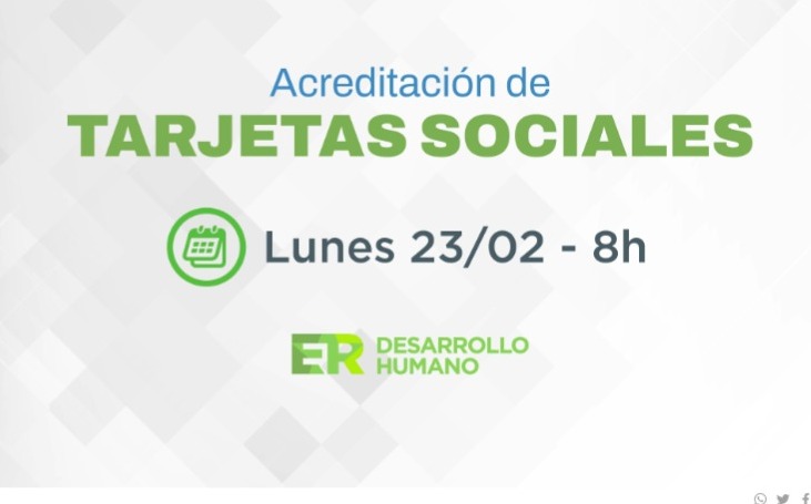 La Secretaría de Articulación de Políticas Sociales del Ministerio de Desarrollo Humano, informa que este lunes 23 de febrero se habilitarán los saldos de las tarjetas sociales, a partir de las 8.