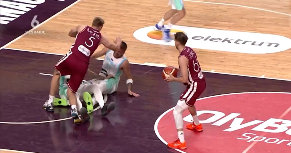 La estrella de Los Ángeles Lakers en la NBA sufrió un fuerte dolor cuando restaban 6:40 minutos para el final del tercer cuarto y Letonia se imponía 68-52. La fortuita acción se produjo cuando el letón Kristers Zorks intentó una penetración al aro y terminó empujando al esloveno Gregor Hrovat, quien perdió el equilibrio y cayó de espaldas encima de la pierna de Doncic. El base de 26 años lanzó un agudo alarido, se tomó el rostro, evidenciando la existencia del golpe y quedó sentido a un costado de la cancha. Las imágenes mostraron al resto de sus compañeros estremecidos y preocupados por la salud de su mejor jugador, quien se marchó al vestuario para ser atendido, volvió al banco de suplentes, pero no regresó al partido.